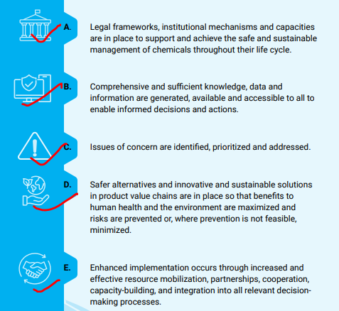 The fifth objective highlights the importance of enhanced implementation through effective resource mobilization, partnerships, cooperation, and capacity-building. It also emphasizes the integration of chemical management into broader policy and decision-making processes, ensuring that chemical safety is embedded within national development planning and sustainability strategies.